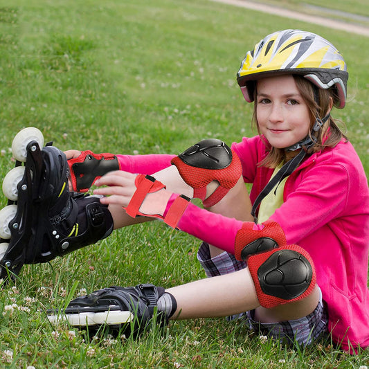 مجموعة سيفتي لحماية الركبة و الكوع و المعصم اثناء النشاطات الرياضية - لون اسود و احمر - مقاس صغير للاطفال