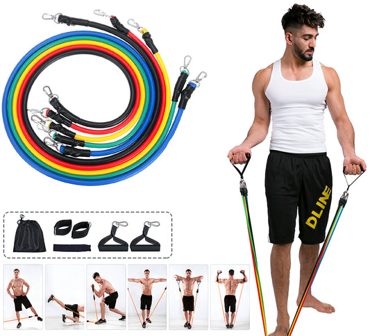 مجموعة استك مقاومة بمقبض لتدريبات اللياقة البدنية - 11 قطعة - حلقات صغيرة